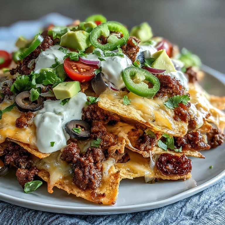 Pin it My neighbor brought over a platter of these nachos after a snowstorm knocked out half the block's power, and we huddled in her kitchen while her oven pumped out heat and melted cheese. The chips were perfectly crisp under all that beef and gooey cheddar, and I remember thinking how something so simple could feel like a small miracle. I asked for the recipe right there, scribbling it on the back of a grocery receipt. Now every time I make nachos, I think of that night and how food has a way of turning strangers into friends.