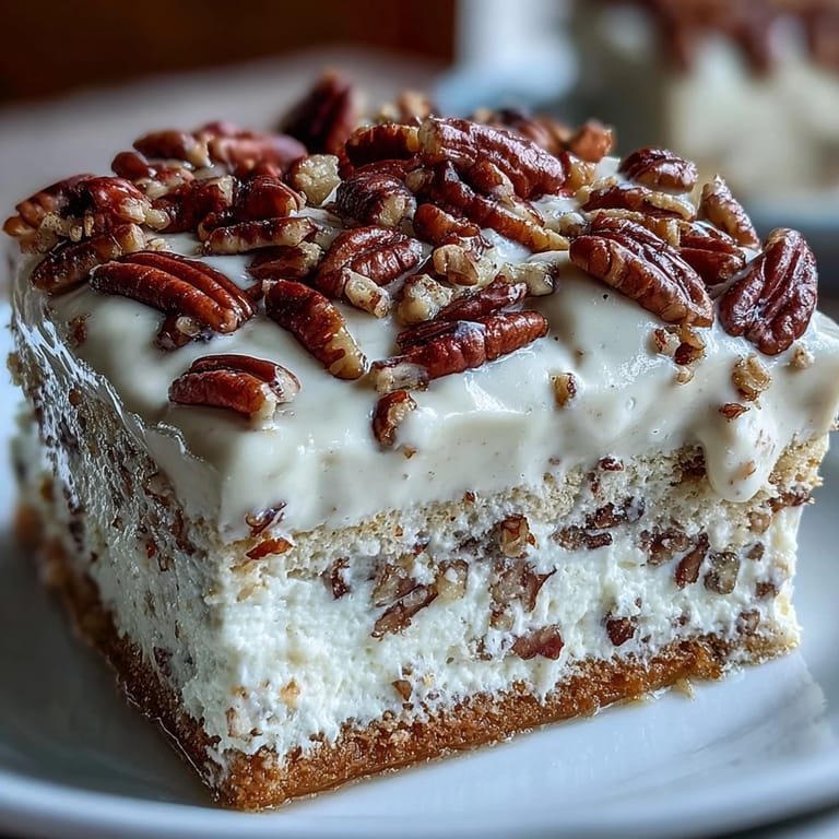 Pin it There was a Sunday afternoon when I made this for my sister's baby shower, and I remember slicing it into neat squares, each one glistening with milk and topped with golden pecans. The room went quiet for a moment, just forks clinking on plates. Someone said it tasted like a hug, and I've never forgotten that.