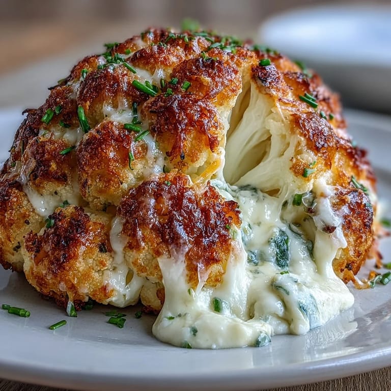 Pin it There's something about presenting a whole roasted cauliflower at the table that makes everyone pause. I discovered this dish accidentally when a friend challenged me to make something vegetarian that wouldn't feel like a compromise, and what started as an experiment became the centerpiece of dinner that night. The golden, bubbling cheese spilling out from the florets felt almost too beautiful to cut into, yet that first bite—creamy, savory, with the cauliflower still holding its gentle sweetness—made it clear this wasn't just vegetables dressed up. Now I make it whenever I want to surprise people, and the reaction never gets old.