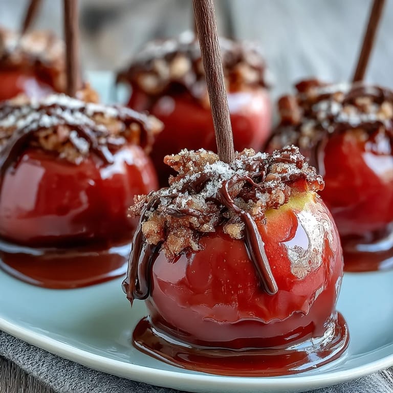 Pin it Classic Red Candy Apples with White Chocolate Drizzle are a delightful treat that brings back nostalgic memories of fairs and autumn festivals. Tart apples are transformed into glossy, vibrant candies coated in a perfectly crisp, red shell, then elegantly finished with a delicate white chocolate drizzle, balancing sweetness and tartness in every bite.
