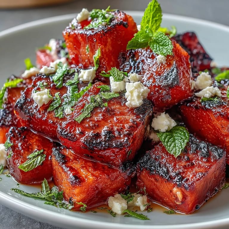 Pin it There's something almost reckless about throwing watermelon on a grill—until that first bite when the heat coaxes out a sweetness you didn't know was hiding inside the fruit. I stumbled onto this combination by accident one August afternoon when my neighbor handed me an enormous seedless watermelon and I had zero ideas, just a hot grill and stubborn optimism. The moment those wedges hit the grates and started hissing, I knew I'd found something special. That salty feta against the warm caramelized flesh, the bright mint cutting through everything—it became the dish I make whenever summer threatens to end.