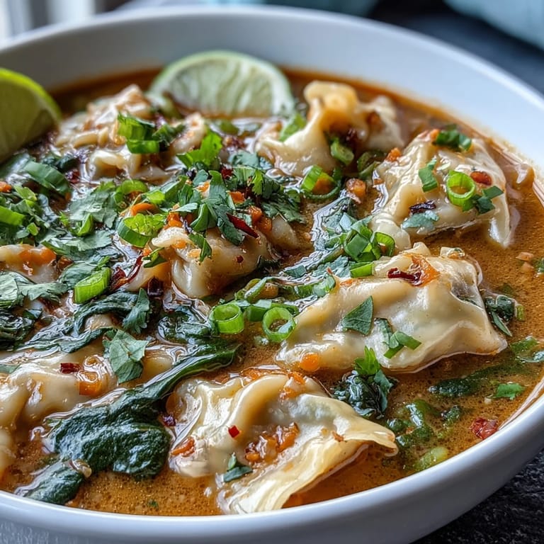 Pin it When the craving for comfort hits but time is short, this Red Curry Wonton Soup is the ultimate solution. A vibrant and nourishing meal, it transforms simple frozen wontons into a restaurant-quality dish featuring a fragrant, coconut-based broth. In just 25 minutes, you can have a steaming bowl of Asian Fusion goodness ready to serve.