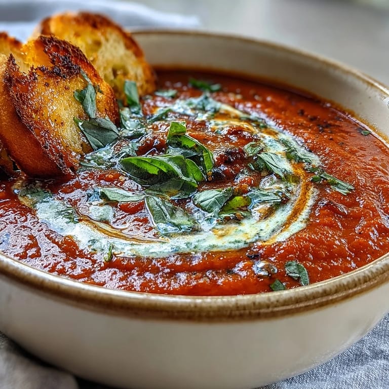 Pin it I used to think tomato soup came exclusively from a red and white can until a rainy Tuesday in a cramped studio apartment changed everything. My neighbor brought over a tray of blistered tomatoes and the smell of roasting garlic filled the entire hallway. That afternoon taught me that true comfort is not just heated up but built from scratch in a hot oven. It was the first time I realized how sweetness can be coaxed out of a simple vegetable with enough heat. Now this soup is my rainy day ritual.
