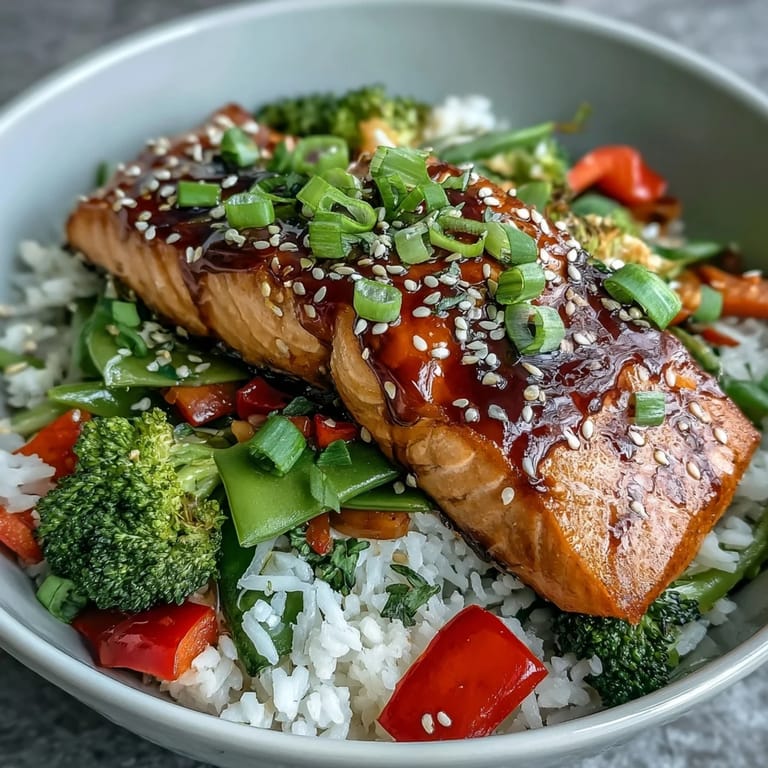 Pin it There's something about the sizzle of salmon hitting a hot pan that makes me pause whatever I'm doing. One weeknight, my neighbor dropped off fresh salmon from the farmer's market, and I had maybe twenty minutes before dinner needed to be on the table. I remembered a teriyaki glaze my dad used to make, and somehow combining that with rice and whatever vegetables were hanging around in my crisper drawer turned into something I now crave at least twice a month. The sweet-savory sauce, the tender fish, the crisp vegetables—it all came together so naturally that I wondered why I hadn't thought of it sooner.