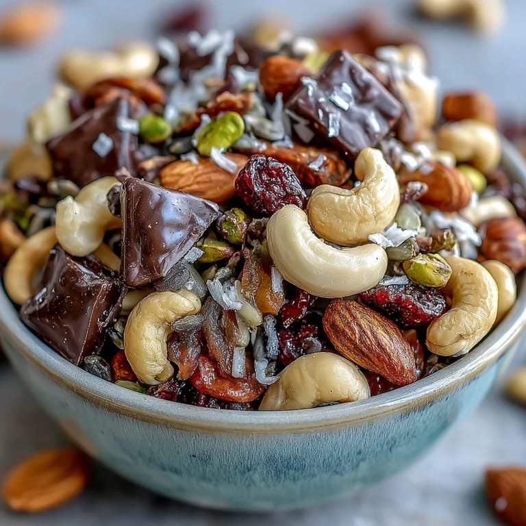 This trail mix is a versatile and wholesome snack that you can easily tailor to your taste by swapping nuts or dried fruits. Its combination of textures—from crunchy nuts to chewy fruits and smooth chocolate chunks—makes every bite a treat. Plus, it pairs wonderfully with refreshing beverages, making it a favorite companion for outdoor excursions.