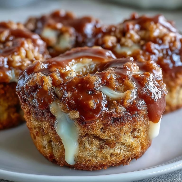 Pin it There's something about a muffin that catches you mid-morning when you weren't even looking for dessert. My neighbor dropped these off one Tuesday, still warm from her oven, and I bit into one without thinking—the banana was soft and tender, then came this sweet caramel and cream cheese center that made me stop what I was doing entirely. She refused to tell me the exact method for weeks, just smiled when I asked, so I spent a Saturday morning reverse-engineering her gift until I figured it out.